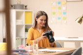 Zdjęcie "Młody fotograf robi zdjęcia kubków przy stole w pomieszczeniach" może być wykorzystywane do celów osobistych i komercyjnych zgodnie z warunkami zakupionej licencji Royalty-free. Obraz jest dostępny do pobrania w jakości wysokiej rozdzielczości do 5760x3840.