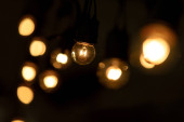 Zdjęcie "Girlanda żarówek zbliżenia leży na tekstylnym malinowym tle z bliska jasnym kolorem w ciemnych kolorach" może być wykorzystywane do celów osobistych i komercyjnych zgodnie z warunkami zakupionej licencji Royalty-free. Obraz jest dostępny do pobrania w jakości wysokiej rozdzielczości do 5760x3840.