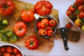 Zdjęcie "Składniki do sałatki lub gulasz na stole w kuchni. Drewniany stół ze świeżymi, jasnymi warzywami na talerzu, deska do krojenia i nóż." może być wykorzystywane do celów osobistych i komercyjnych zgodnie z warunkami zakupionej licencji Royalty-free. Obraz jest dostępny do pobrania w jakości wysokiej rozdzielczości do 5760x3840.