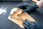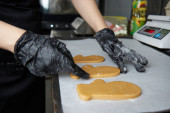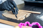 gotować z rękawiczkami sprawia, że ciasteczka za pomocą formy ciasta