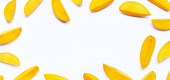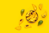 Mango na żółtym tle. Koncepcja owoców tropikalnych.