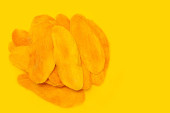 Zdjęcie "Mango na żółtym tle. Koncepcja owoców tropikalnych." może być wykorzystywane do celów osobistych i komercyjnych zgodnie z warunkami zakupionej licencji Royalty-free. Obraz jest dostępny do pobrania w jakości wysokiej rozdzielczości do 5760x3840.