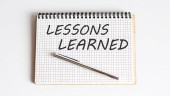 Notatnik z napisem Lekcje zdobyte na czarnym stole.
