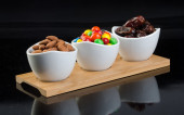 Zdjęcie "Długie paluszki czekoladowe, czekoladowe cukierki i obrane orzechy włoskie w białym kwadratowym talerzu na szarym tle. Czekolada i orzechy włoskie." może być wykorzystywane do celów osobistych i komercyjnych zgodnie z warunkami zakupionej licencji Royalty-free. Obraz jest dostępny do pobrania w jakości wysokiej rozdzielczości do 5760x3840.