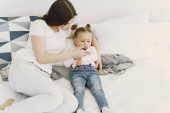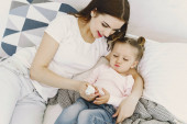 Zdjęcie "Matka z termometrem siedzi obok córki." może być wykorzystywane do celów osobistych i komercyjnych zgodnie z warunkami zakupionej licencji Royalty-free. Obraz jest dostępny do pobrania w jakości wysokiej rozdzielczości do 5760x3840.