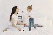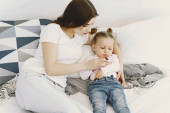 Zdjęcie "Mama bawi się kosmetykami w łóżku z córką" może być wykorzystywane do celów osobistych i komercyjnych zgodnie z warunkami zakupionej licencji Royalty-free. Obraz jest dostępny do pobrania w jakości wysokiej rozdzielczości do 5760x3840.