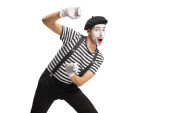 Pantomima człowiek ciągnąc linę izolowane na białym tle