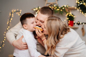 Zdjęcie "szczęśliwa rodzina w białych ubraniach w domu w pobliżu choinki. " może być wykorzystywane do celów osobistych i komercyjnych zgodnie z warunkami zakupionej licencji Royalty-free. Obraz jest dostępny do pobrania w jakości wysokiej rozdzielczości do 5760x3840.