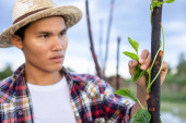 Zdjęcie "Młody rolnik posiadający tabletki i zakłady kontrolne na polu" może być wykorzystywane do celów osobistych i komercyjnych zgodnie z warunkami zakupionej licencji Royalty-free. Obraz jest dostępny do pobrania w jakości wysokiej rozdzielczości do 5760x3840.