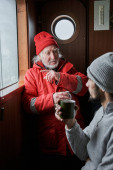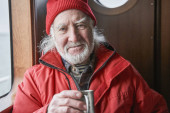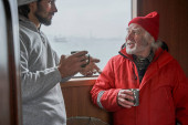 Mężczyzna relaksujący się po pracy ze swoim uśmiechniętym kolegą