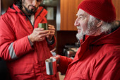 Zdjęcie "Rybak pije herbatę z kolegą na łodzi." może być wykorzystywane do celów osobistych i komercyjnych zgodnie z warunkami zakupionej licencji Royalty-free. Obraz jest dostępny do pobrania w jakości wysokiej rozdzielczości do 5760x3840.