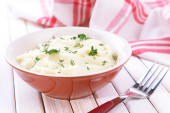 pyszne puree z zielonych w misce na stół szczegół