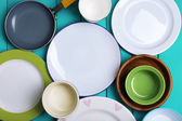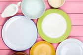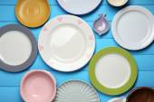 różne naczynia na drewniane tła