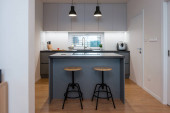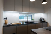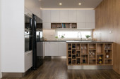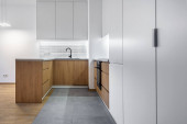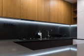Zdjęcie "Wnętrze nowoczesnej kuchni z wbudowanym sprzętem w domu" może być wykorzystywane do celów osobistych i komercyjnych zgodnie z warunkami zakupionej licencji Royalty-free. Obraz jest dostępny do pobrania w jakości wysokiej rozdzielczości do 5760x3840.