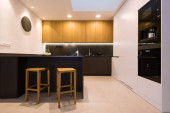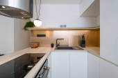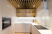 Wnętrze nowoczesnej kuchni z wbudowanym sprzętem w domu