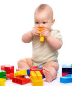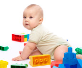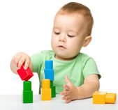 mały chłopiec z budynek cegieł