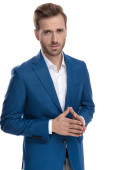 młody biznesmen z skrzyżowanymi ramionami patrzący na kamerę odizolowany na białym