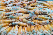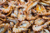 krewetki rakowe i homary na hiszpańskim targu rybnym