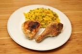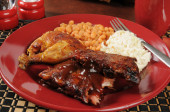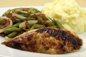 obiad kurczaka z rusztu serwowane na białym talerzu