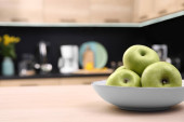 Zdjęcie "Świeże dojrzałe jabłka i gruszki na drewnianym stole w kuchni. Miejsce na tekst" może być wykorzystywane do celów osobistych i komercyjnych zgodnie z warunkami zakupionej licencji Royalty-free. Obraz jest dostępny do pobrania w jakości wysokiej rozdzielczości do 5760x3840.