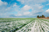 Zdjęcie "Rolnictwo. Pokryte śniegiem rzędy pszenicy. Zielona pszenica pod śniegiem." może być wykorzystywane do celów osobistych i komercyjnych zgodnie z warunkami zakupionej licencji Royalty-free. Obraz jest dostępny do pobrania w jakości wysokiej rozdzielczości do 5760x3840.