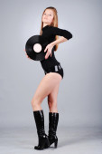 piękna kobieta i czerwone krzesło