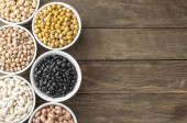 Zdjęcie "Różne fasole i ziarna na białych miskach z przestrzenią do kopiowania." może być wykorzystywane do celów osobistych i komercyjnych zgodnie z warunkami zakupionej licencji Royalty-free. Obraz jest dostępny do pobrania w jakości wysokiej rozdzielczości do 5760x3840.