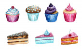 Płynny wzór akwarelowych babeczek. Tło z babeczkami