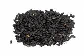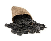 Nasiona słonecznika w torbie na białym tle, widok z góry