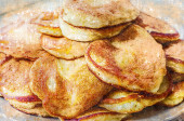 Tradycyjny posiłek. Smażenie brisoles z mięsem i jajkiem na patelni. Porcja dania mięsnego.