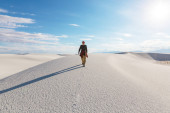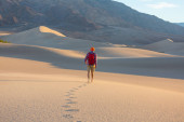 Zdjęcie "Wędrowiec na pustyni. Czas wschodu słońca." może być wykorzystywane do celów osobistych i komercyjnych zgodnie z warunkami zakupionej licencji Royalty-free. Obraz jest dostępny do pobrania w jakości wysokiej rozdzielczości do 5760x3840.