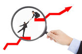 biznesmen stoją na łące i obejrzeć wykres zysków firmy clo