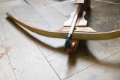 Piękne izolowane Crossbow przeładować go na tle drewna