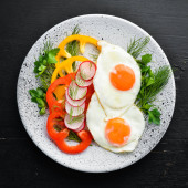 Zdjęcie "Jaja i warzywa smażone w białym platynie" może być wykorzystywane do celów osobistych i komercyjnych zgodnie z warunkami zakupionej licencji Royalty-free. Obraz jest dostępny do pobrania w jakości wysokiej rozdzielczości do 5760x3840.