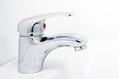 Nowoczesny kran ze stali nierdzewnej. Odizolowany na białym tle. W studiu.