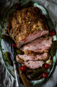 Miód dijon pieczone udka indyka z kalafiorem.. selektywne skupienie