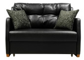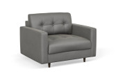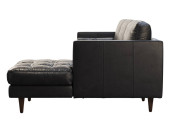 Skandynawski skórzany fotel. Czarny skórzany fotel tapicerski z poduszkami na białym tle. Połowa wieku, Loft, Chata, skandynawskie wnętrze. 3d renderowanie