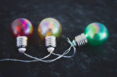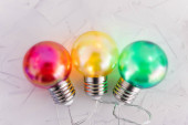 różne poglądy i idee konceptualny obraz, czerwone żółte i zielone żarówki światła obok siebie metafora przeciwstawnych opinii lub postawy