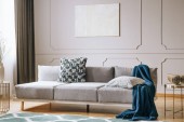 Zdjęcie "Piękny salon z wygodną, szarą sofą" może być wykorzystywane do celów osobistych i komercyjnych zgodnie z warunkami zakupionej licencji Royalty-free. Obraz jest dostępny do pobrania w jakości wysokiej rozdzielczości do 5760x3840.