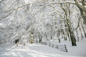 Zdjęcie "Ścieżka w bukowym lesie Monte Pettino pokrytym śniegiem" może być wykorzystywane do celów osobistych i komercyjnych zgodnie z warunkami zakupionej licencji Royalty-free. Obraz jest dostępny do pobrania w jakości wysokiej rozdzielczości do 5760x3840.