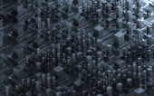 Techno high-tech tło, geometria, sześcian, abstrakcja. Ilustracja 3D, renderowanie 3D.