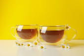 Zdjęcie "Odmiany ziół parzonych w szklanym czajniku na drewnie przed białą ścianą. Lipa, kwiat granatu, zielona herbata, nasiona winogron, liście oliwek, paluszki cynamonowe i suszona róża.Wybrane serce ostrości" może być wykorzystywane do celów osobistych i komercyjnych zgodnie z warunkami zakupionej licencji Royalty-free. Obraz jest dostępny do pobrania w jakości wysokiej rozdzielczości do 5760x3840.