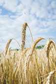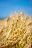 Złoty pszenicy gotowe do zbioru w dziedzinie hodowli pod blu