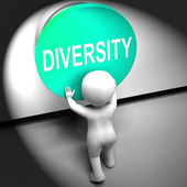 Różnorodność prowadzi do pieniędzy i sukcesu w biznesie i życiu - symbolizowane przez schody i znak różnorodności wskazujący na złote pieniądze, aby pokazać, że różnorodność pomaga stać się bogatym, ilustracja 3D