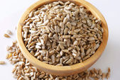 Miska z obranymi nasionami słonecznika na białym tle