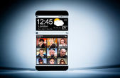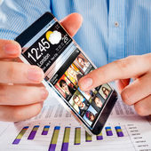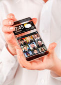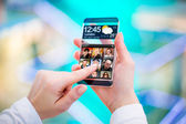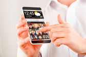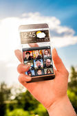 smartphone rezygnować przeźroczysty ekran w ludzkich rąk.