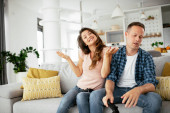 Młoda para ogląda film na laptopie. Kochająca para ciesząca się w domu.