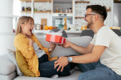 Zdjęcie "Mąż zaskakuje żonę prezentem. Młody mężczyzna daje pudełko prezentów swojej żonie." może być wykorzystywane do celów osobistych i komercyjnych zgodnie z warunkami zakupionej licencji Royalty-free. Obraz jest dostępny do pobrania w jakości wysokiej rozdzielczości do 5760x3840.