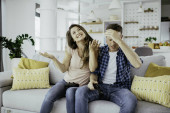 Zdjęcie "Młoda para ogląda film na laptopie. Kochająca para ciesząca się w domu." może być wykorzystywane do celów osobistych i komercyjnych zgodnie z warunkami zakupionej licencji Royalty-free. Obraz jest dostępny do pobrania w jakości wysokiej rozdzielczości do 5760x3840.