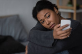 Młoda kobieta czeka na wyniki z laboratorium. Zamartwiona kobieta czeka na test Covid-19.